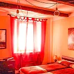 Denna lägenhet på 75 m^2 har balkong, te/kaffebryggare och teve i varje rum. I denna lägenhet finns separat toalett, badkar och dusch.